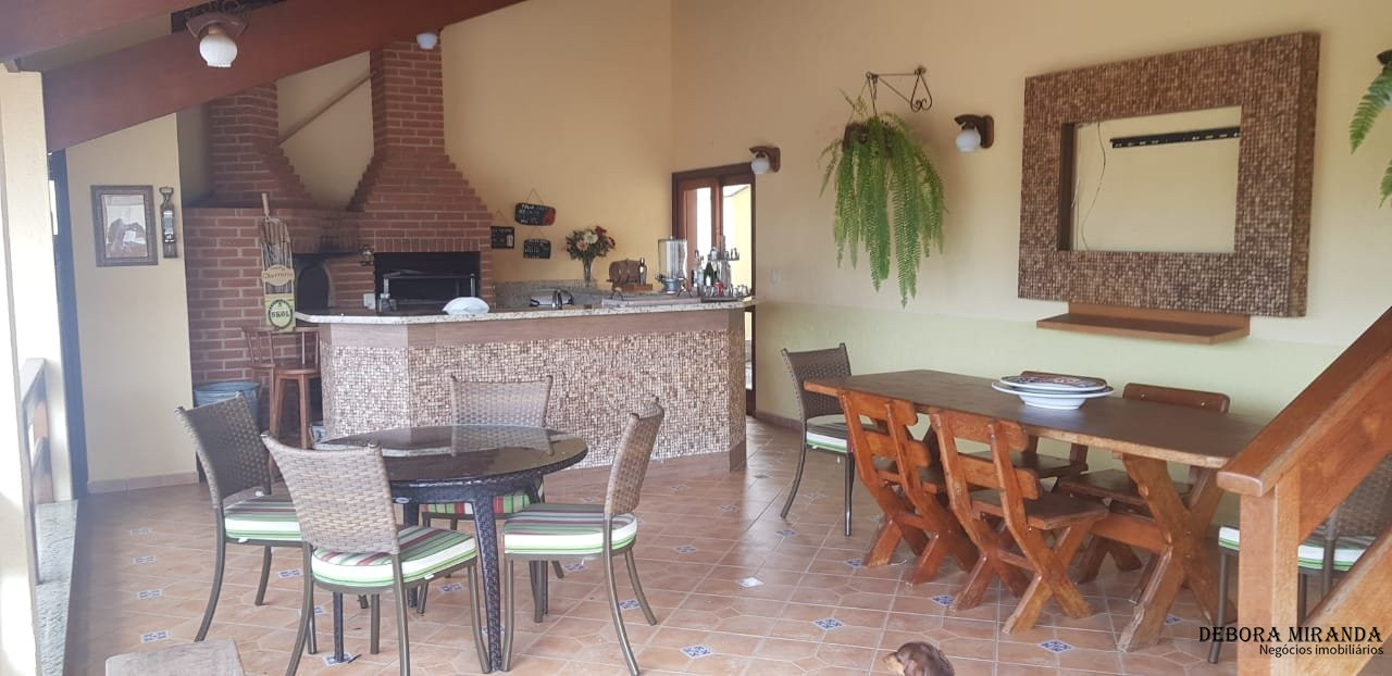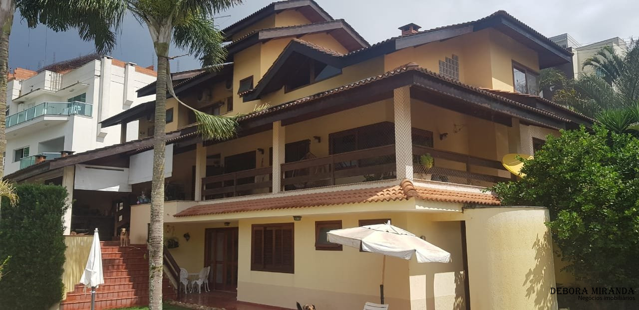 Sobrado em condomínio com 03 suítes sendo 01 master com closet e hidro ,02 quartos com saleta para hospedes ,02 suítes com copa cozinha para funcionários ,depósito ,piscina com hidro e vestiário ,churrasqueira ,com banheiro ,sala de estar com lareira ,sala de jantar ,sala de TV ,casa toda avarandada ,dois espaços prontos para aquário ,garagem coberta para 03 carros.